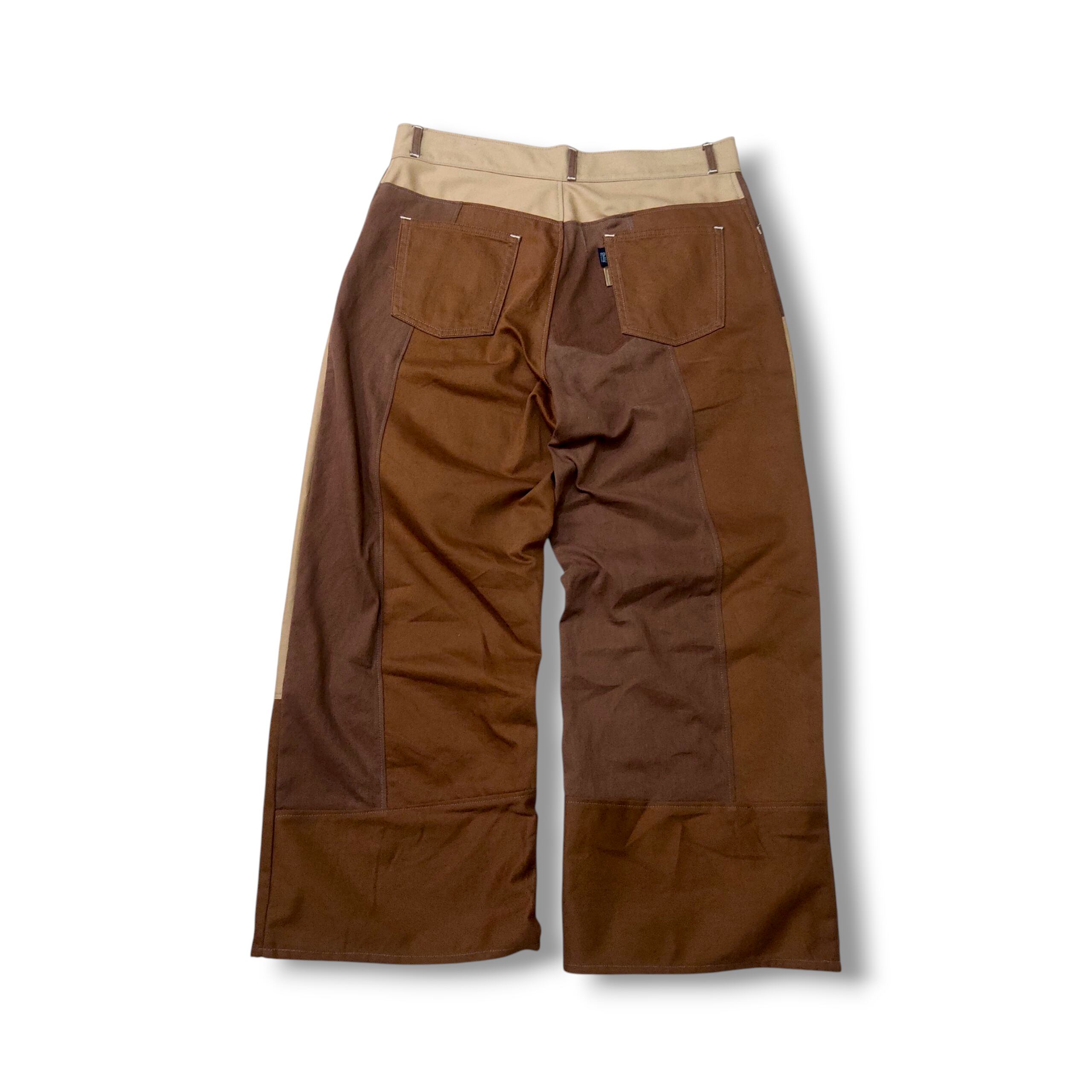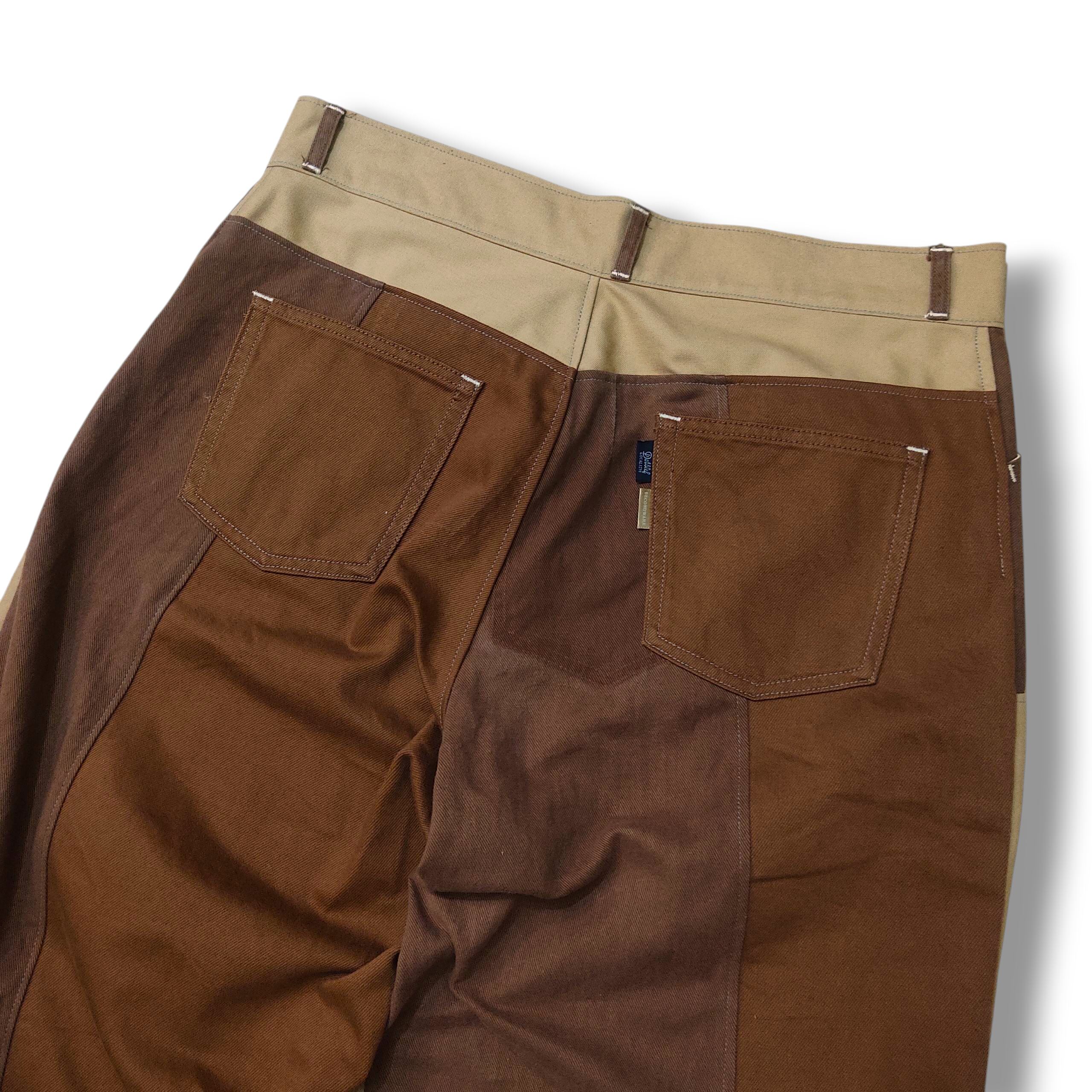 各種古着を解体して再構築した1点物のワイドパンツ。