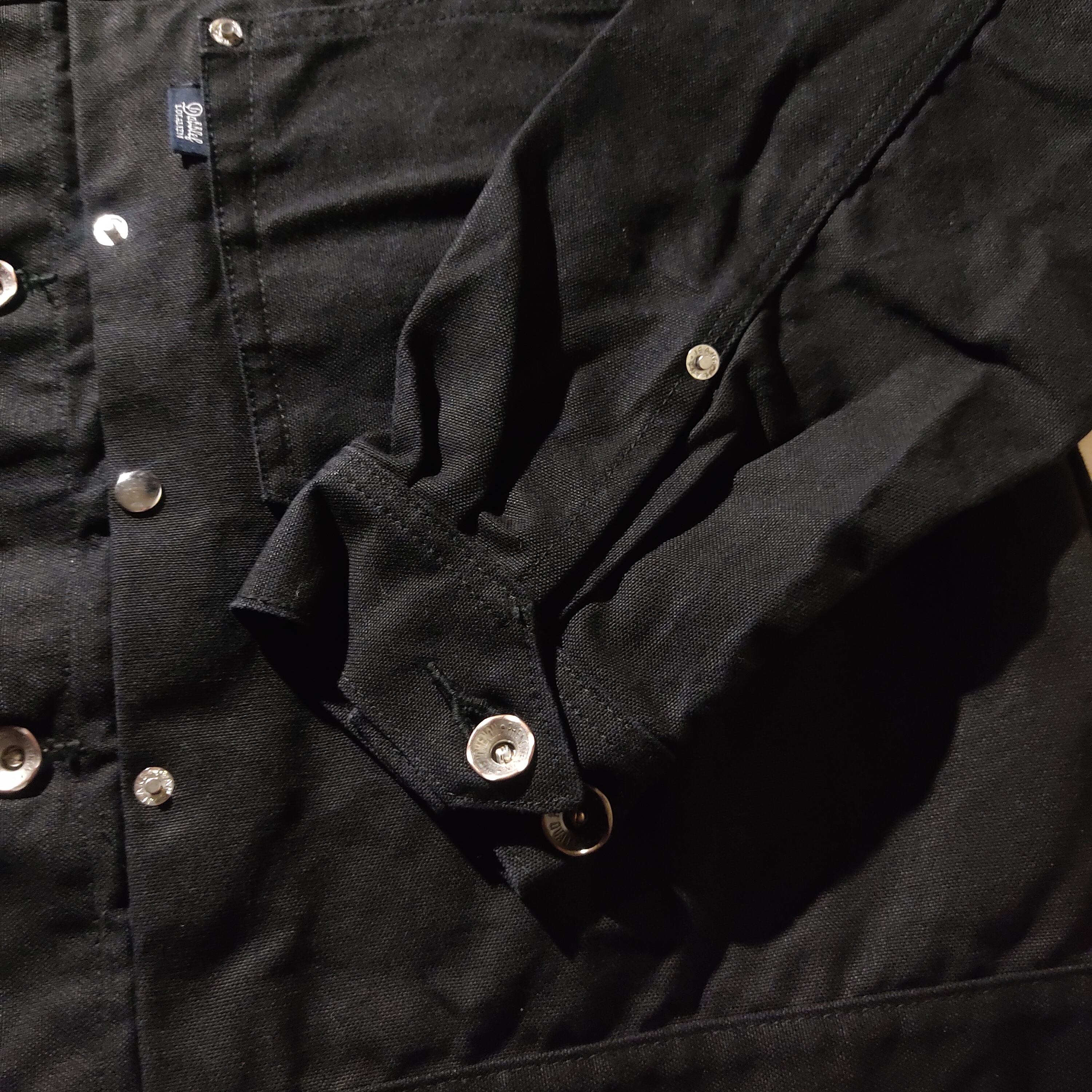 ハリのあるブラックのキャンバス素材にクリームカラーのコーデュロイ襟が、シンプルかつクラシックな佇まい。