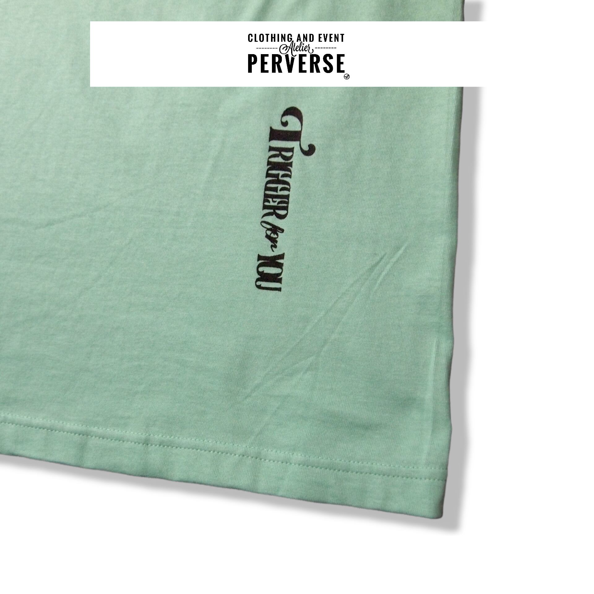 フロント裾部分には『TRIGGER for YOU(きっかけをあなたに)』。アトリエの活動コンセプトをロゴにした通称トリガーロゴを配しております。