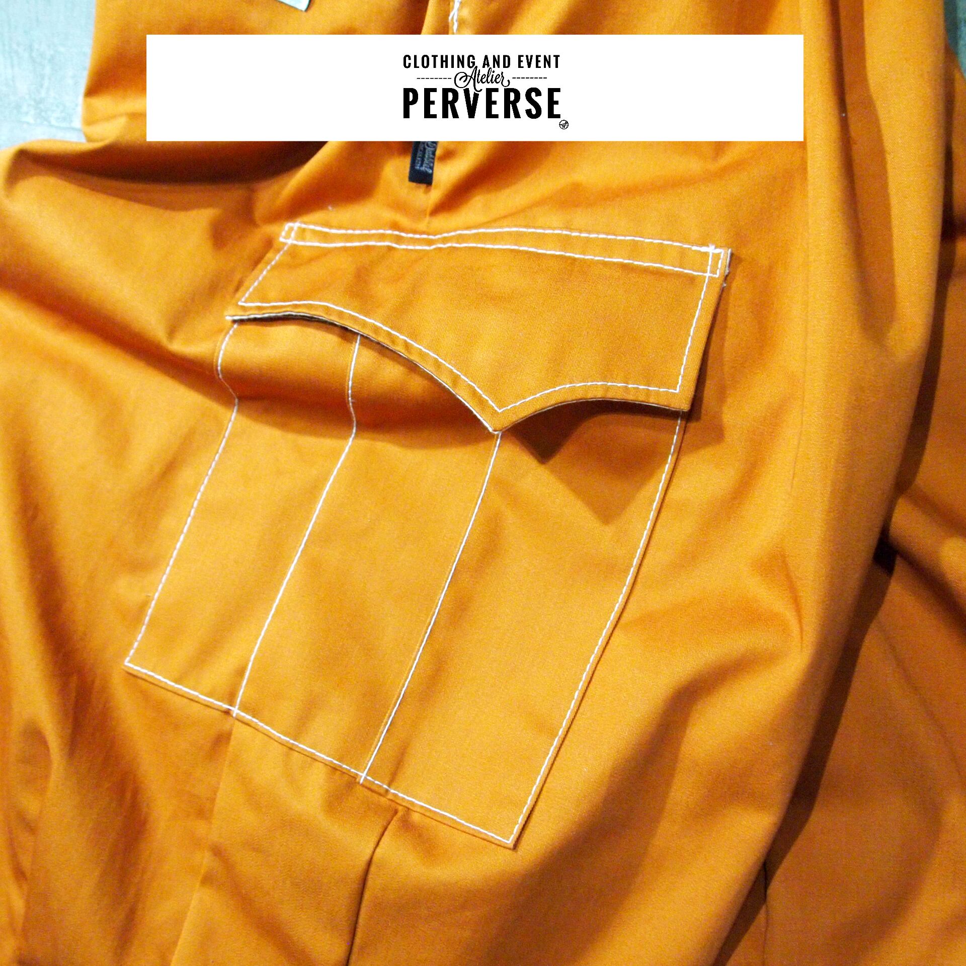 まず、スケーターのように身体を大きく動かすのにも適していて、作業をして汗をかいても身体にまとわりつかず涼しく過ごせるワイドな立体仕様に。大がかりな作業をする場合ロングブーツで膝下は守れるから丈はフルレングスの必要はないし、万が一、怪我をしても脱ぎやすくウエストはゴムとドローコードだろう。作業用の道具や部品を持ち歩く為にはやはりカーゴポケットも必要だし、DIYで自分らしくリメイクしやすいようにシンプルな見た目も大事で、オールラウンドな物がいいし…